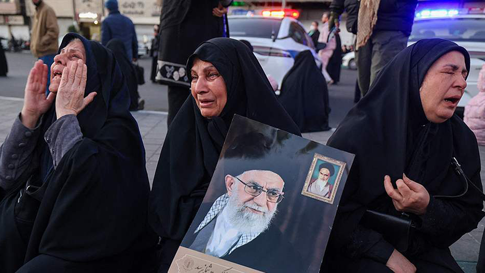 当地时间2026年3月1日,伊朗德黑兰,民众在广场悼念伊朗最高领袖哈梅内伊。视觉中国 图